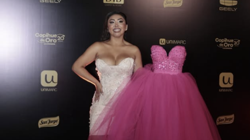 Este cambio se hizo evidente durante su deslumbrante aparición en la alfombra roja del reciente Copihue de Oro. La influencer lució un estilo novedoso que ella misma denominó «vestido doble«, acompañado en su paso por la alfombra por David Montoya y Tomás Printemps, quienes animaron la previa del programa Fiebre de Baile de Chilevisión.