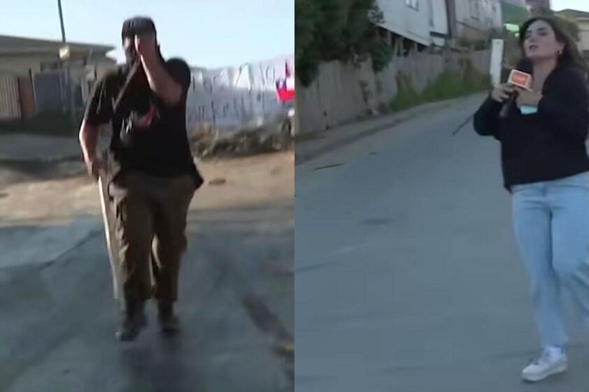 La periodista de Contigo en la mañana de CHV, Daniela Muñoz, vivió una situación tensa este martes mientras cubría una orden de desalojo en la megatoma de San Antonio, ya que un encapuchado se dirigía directamente hacia ella y su equipo.