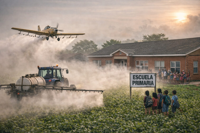 Cuando se pulveriza desde el aire o con máquinas terrestres a escasos metros de las casas, no se fumigan cultivos: se fumiga a personas. Se fumiga a niños que juegan en el patio de la escuela. Se fumiga a mujeres embarazadas. Se fumiga a ancianos. Y se hace, muchas veces, mirando hacia otro lado cuando la normativa es clara y establece límites que deberían proteger la vida.