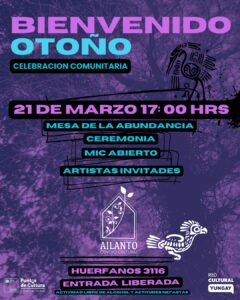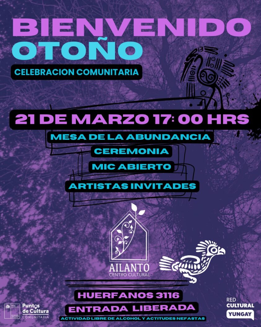 El Centro Cultural Comunitario Espacio Ailanto, ubicado en Barrio Yungay, celebrará la llegada de una nueva estación con su tradicional Estacional de Otoño, una jornada artística y comunitaria que invita a compartir arte, reflexión y encuentro colectivo.