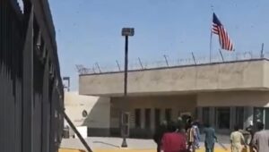 Las imágenes muestran a grupos de jóvenes avanzando hacia el complejo, trepando barreras y forzando accesos exteriores. En algunos registros se observan daños en estructuras cercanas a la entrada del consulado. Las consignas apuntaban directamente contra Washington y contra Israel, a quienes los manifestantes responsabilizan por el asesinato del líder iraní.