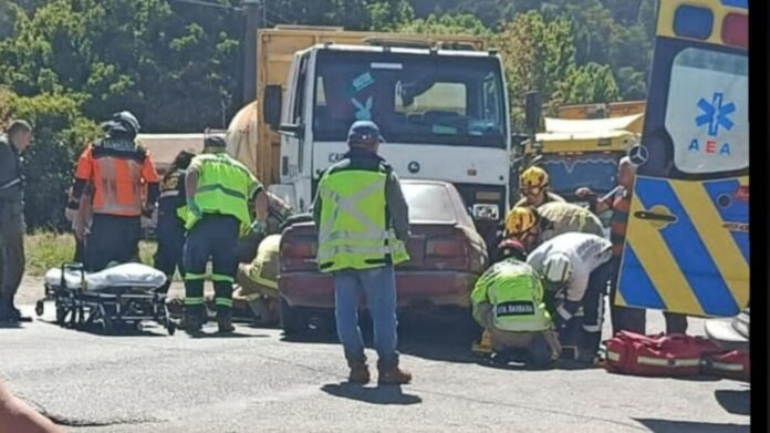 Al llegar, se constató que se trataba de una colisión frontal entre un automóvil y un camión aljibe. Dos ocupantes del vehículo más pequeño resultaron heridos.
