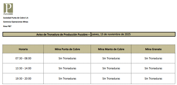 20/11/2025AVISO DE INTERRUPCIONES EN LA PRODUCCIÓN DE PUCOBRE / JUEVES 20 DE NOVIEMBRE DE 2025byeditor